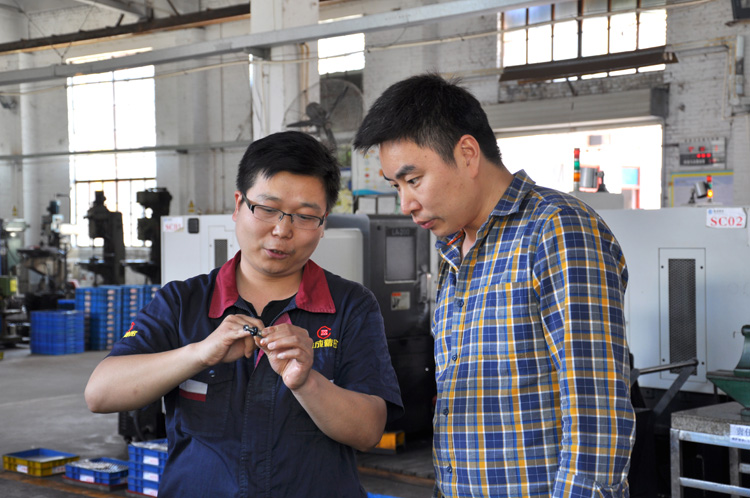 隨后,劉總一行分別參觀了火花機(jī)車間和機(jī)械加工車間,與火花機(jī)車間喬鵬飛和機(jī)械加工車間主任馬軍峰進(jìn)行了技術(shù)交流。在看到機(jī)械加工車間自動(dòng)化機(jī)器人時(shí),劉總一行產(chǎn)生了濃厚的興趣,對信成公司通過自動(dòng)化機(jī)器人提升效率表示由衷的贊賞。
