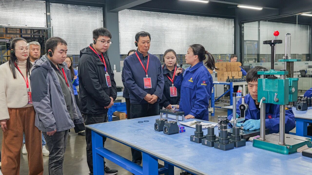 在丁董與袁總帶領(lǐng)下,嘉賓們分為紅、藍(lán)兩隊(duì),有序參觀了公司銑加工車間、車床刀座柔性生產(chǎn)線、裝配車間機(jī)電產(chǎn)品線、檢測(cè)檢驗(yàn)中心及車加工車間。