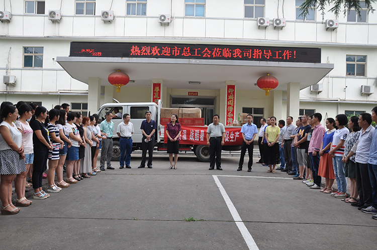 7月13日上午,洛陽市總工會領(lǐng)導(dǎo)王越華、洛陽市老城區(qū)工會主任杜學(xué)禮、西關(guān)辦事處黨工委書記王逢偉、西關(guān)辦事處黨工委副書記紀(jì)委書記李純帶領(lǐng)工會干部職工,帶著價(jià)值數(shù)千元的解暑水果、飲料、藿香正氣水等物品,來到洛陽信成精密機(jī)械有限公司開展夏季“送清涼”活動。